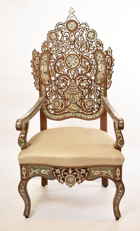 Handmade Miniature Throne | Wooden Chair with Mother of Pearls